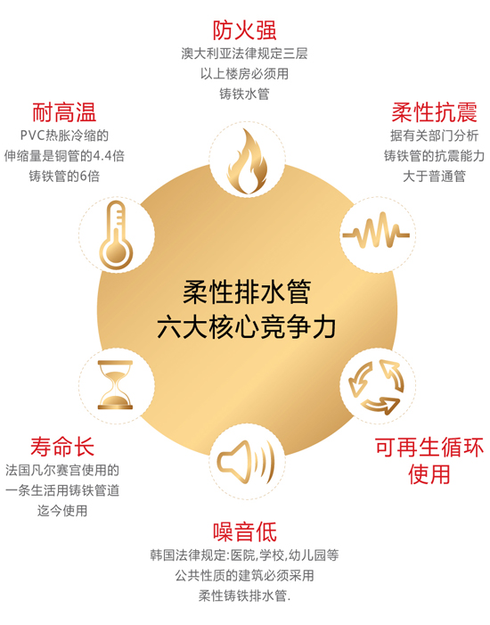 鑄鐵排水管是建筑管道和市政管道重要的組成部分,其最早出現(xiàn)于1644年的法國凡賽爾宮,距今已有三個多世紀(jì)的歷史仍承擔(dān)著重要排水功能。1993年金秋公司成立了一家以生產(chǎn)鑄鐵排水管為主的科技型企業(yè),至今已發(fā)展成為擁有員工近千人,市政鑄件分廠、鑄管廠、機械鑄件分廠、機加工分廠和鑄鐵冶煉廠多家分廠的鑄鐵排水管生產(chǎn)企業(yè)。公司擁有進出口自營權(quán)產(chǎn)品足跡遍布全球,能夠按客戶技術(shù)要求生產(chǎn)各類鑄鐵排水管,擁有先進的價格查詢系統(tǒng),能夠?qū)崟r提供全國各主要產(chǎn)地的鑄鐵排水管價格信息,是國內(nèi)規(guī)模較大的鑄鐵排水管廠家之一,竭誠歡迎廣大客商前來洽談業(yè)務(wù)。